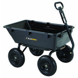 The newly-designed Gorilla Carts 1200-lb. Capacity Heavy-Duty Poly Garden Dump Cart has an innovative, updated frame design that makes it quick and easy to assemble and put this cart to work. The cart features the patented quick-release dumping system so the cart can be loaded and unloaded with ease, and the balanced 4-wheel design makes it a simple-to-use alternative to a wheelbarrow. The new frame design allows for easy assembly, while improving maneuverability and rigidity, increasing ground clearance, and giving the cart a tight turning radius. The tough and durable poly bed is maintenance-free and easy to clean, and the 13 in. pneumatic tires are designed to handle any terrain whether you're hauling heavy dirt, mulch, gravel, or plants. The convertible 2-in-1 handle makes it simple to switch between pulling the cart by hand or towing behind a lawn tractor. With a 1,200 lb. hauling capacity, this cart is perfect for any job around the home, garden, or farm. The bed dimensions measure 40-inches by 25-inches, and the cart has an overall height of 26.2-inches and weighs 60-pounds. Gorilla Carts full line of products meets the needs of the light-duty homeowner as well as the commercial-duty professional user by offering a wide variety of carts in different sizes and weight capacities. The Gorilla Carts GOR6PS Heavy-Duty Poly Garden Dump Cart comes with a 1-year limited warranty.