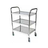 Stainless Steel Utility Cart. Castor: MS Chrome Plated. Dimensions: 16"W x 24"L x 30"H (Floor to Top Shelf Height). Overall Dimensions: 16.25"W x 28.5"L x 36".
