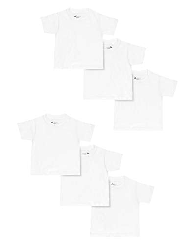 You know how tough toddlers are on clothes. Now here's a tee that can take it. Durable 100% cotton jersey feels soft yet resists wear & tear. Two-needle topstitch trim strengthens crewneck cuffs and hem. Lay Flat rib-knit collar keeps its shape wa sh after wash. Comes in a palette of kid-pleasing colors. Available in a convenient 6-pack.