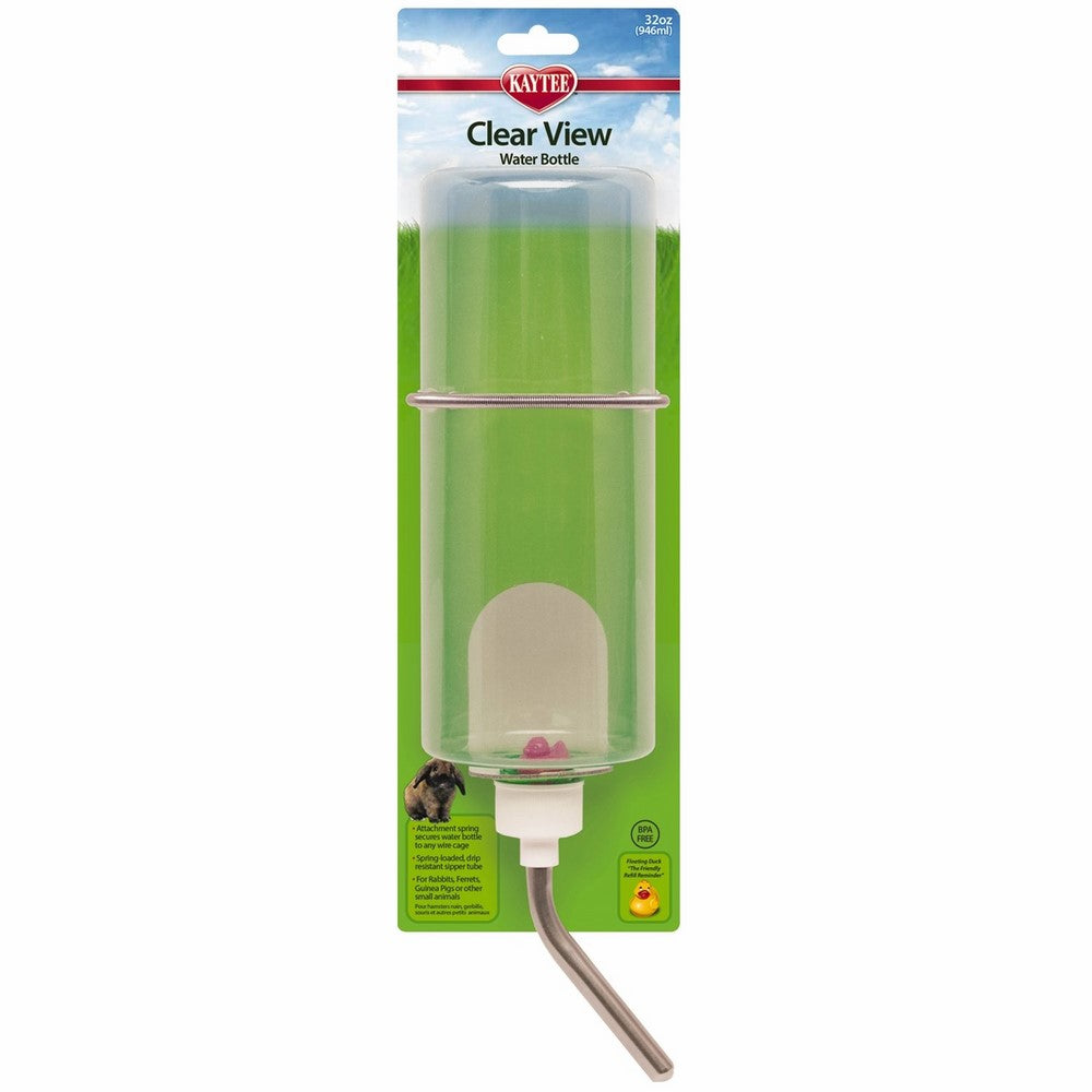 Comes with floating duck to remind owner to refill the bottleExtra large 32 ounce size bottle is great for thirsty pets like rabbits, guinea pigs and chinchillasActual size 3.12 inch diameter and 12-1/2-inch highSafe BPA free plastic water bottle