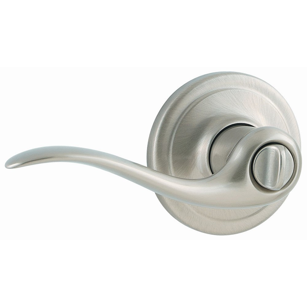Step up to designer styles and superior security with Kwikset Signature Series products. Tustin's fashionable wave silhouette design is the perfect complement to homes with inspired style. This privacy knob/lever is best used in interior bed and bath applications where privacy is required. Both knobs/levers are locked or unlocked by turn button inside. The outside knob/lever can be unlocked by an emergency key. The crisp, clean appearance of the Satin Nickel finish adds to the overall look of the product and brings a modern feel.