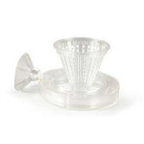 Made of a soft, flexible, break-resistant plastic. Attaches to the side of the aquarium using a large suction cup so that feeding may be restricted to a certain area. Use as a free floating feeder.