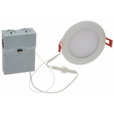 The Lithonia Lighting Wafer-Thin LED recessed downlight with remote driver box combines high quality light output and efficiency while eliminating the pot light housing for competitive affordability. This innovative wafer slim Type IC design allows easy installation for new construction or remodel from below the ceiling without the requirement of a pot light housing. Technical Specifications: Power: 9.6W Input Voltage: 120V (Connects directly to power supply via provided UL recognized driver) Luminous Flux: 675LM Emitting Color: 3000K(Bright White) Dimmable: Yes Light Source: LED CRI: 80 Surface Size: 4.7 inches Back Hole Size: 4 inches Dimension: 4.7 x 4.7 x 1.1 inches Light direction: Downlight Average life: 36,000 hours Warranty: 5 years – Limited Electrical: Plenum rated cable connector to connect from module to remote driver box. Isolated driver integrated inside steel remote box with four 7/8" knockouts with slots for pry-out Meets Highest Industry Standards: CSA certified in the USA and Canada, Energy Star Rated, IC Rated, Wet Listed and Air Tight More electrical information and complete list of compatible dimmers are located on spec sheet How many LED lights do I need for the room Wafer 4 inch: One unit is needed for about every 1.5sq feet in an 8 ft ceiling room 3 units for a room ranging from 5sq ft – 8 sq ft 6 units for a room ranging from 9sq ft – 11 sq ft 9 units for a room ranging from 12sq ft – 14 sq ft Which light colors work for me 3000K: Used in family homes, hotels, coffee shops and other warm and sweet environments. 4000K: Used in homes with a need of a soft white lighting atmosphere. 5000K: Used in offices, working areas, shopping malls and other commercial areas that needs super bright lighting Application Areas: Ideal for new constructions, remodels or retrofit installations. Closets, attics, hallways, bathrooms, kitchens, basements, soffits, entry ways, porches, garages Stairwells, corridors, nursing/retirement homes, condos, elevators, apartments, and any other small areas Installation Guide: 1. Double check and measure the ceiling hole. 2. Open the cover of the remote driver box. Push and remove one of the knockouts on the side plate. 3. Connect the remote driver box to the light fixture and tighten nut connector. 4. Place remote driver box through the cut-out hole. 5. Pull the spring clip on the fixture up and through the ceiling hole. Place module in the hole 6. Turn the power on Installation guide for kit included in the package.