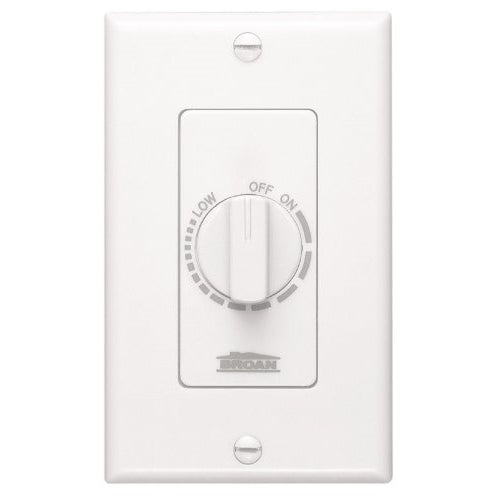 120-volt, 3-amp capacityFits single-gang box for most common applicationsDial control knob for variable selection of speedSound level has positive on/off actionBuilt-in radio noise suppressor for quiet operationThe NuTone 57W Variable Speed Wall Control for Ventilation Fans has a 120-volt, 3-amp capacity. Fits single-gang box for most common applications. Dial control knob for variable selection of speed and sound level has positive on/off action so you can select the precise ventilation level you need. Built-in radio noise suppressor for quiet operation. For use with all Broan fans within Amp rating except ceiling paddle fans. Do not use with impedance protected motor.