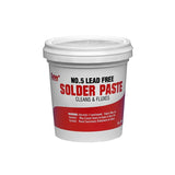 Oatey No. 5 Lead Free Paste Flux cleans and fluxes most commonly soldered metals including copper, brass, zinc, galvanized iron, lead and tin or copper-coated metals. Fluxing is a critical step in the soldering process. No. 5 Paste Flux provides superior wetting properties for better solder flow and can be used with most soft solders. No. 5 Paste Flux complies with CA & VT lead content regulations. For clean sweat copper fittings, no pre-cleaning is necessary. Apply flux to tube and fittings. Heat and apply solid wire solder. For other applications, clean excessive dirt and corrosion. Apply flux, heat and solder. The term "sweat" is interchangeable with the term "soldering" and is used specifically with soldering copper tubing. Paste Flux: Paste fluxes require only a small amount applied to the whole joint. When flux is warm, the salts may come to the top or bottom of the container and need to be re-mixed prior to use. This does not affect the quality of the flux. This product is corrosive and can be irritating. To prevent corrosion, wash off excess flux after solder. Highlights: Size: 4 Oz. Cleans and fluxes at the same time. Effective on all metals except aluminum, magnesium and stainless steel. 100% lead free. Blended to clean surface oxidation. Physical/Chemical Properties: Appearance: Amber Paste Shelf Life: 2 years from manufacture date pH: 3 - 4 Solder Temp. Range: 400-700 F Common Applications: Oatey No. 5 Lead Free Paste Flux can be used to solder most commonly soldered metals including copper, brass, zinc, galvanized iron and tin or copper-coated metals.