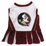 Are you getting ready for game day We've got you covered...!100% soft polyester screen printed team cheerleader outfit. - Team Name & Logo printed on the back in vibrant colorsContrast pleated skirt with velcro closure frontOfficially NCAA Licensed!For sizing specifications please refer to the size chart by measuring your dog from the nape of the neck to the base of the tail. Machine wash delicate, cold water, line dry, do not iron