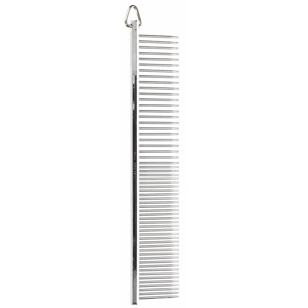 Smooth rounded teethAvailable in medium/coarse coat and medium/fine coatQuality GuaranteedSmooth rounded teeth combs for complete groomingGrooming your dog is easy with our dog combBest suited for medium to large breeds with medium / coarse coatsWide and narrow spacing of teeth provides complete groomingFor best results, use in conjunction with Safari Pin, Slicker or Bristle Brush, depending on the breed.Recommended by professional groomers, the smooth rounded teeth on this comb are gentle to the dog's skinSuggested breeds: Afghan, Chow Chow, German Shepherd, Keeshond, Old English Sheepdog, Retrievers, Schnauzer, TerrierTo maintain a healthy coat, brush and comb your pet regularly, and always comb the entire coat before bathing