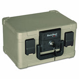 30 Minute UL Class 350 Fire rating withstands temperatures up to 1550 degrees F48 hour water protection to keep contents dry, safeguard against bursting water pipes and floodsProtects CDs/DVDs, flash drives, portable hard drives, birth certificates, passports and other valuable items from fire and water damageInternal dimensions: 9.6 W x 6 D x 4.5 H Inches - holds #10 envelopesUnit will float when water is present making it easy to find in the event of a disasterSecure locking chest with dual compression latches and handle for easy transportFree lifetime replacement after fire guarantee, 7 year limited warranty against defects